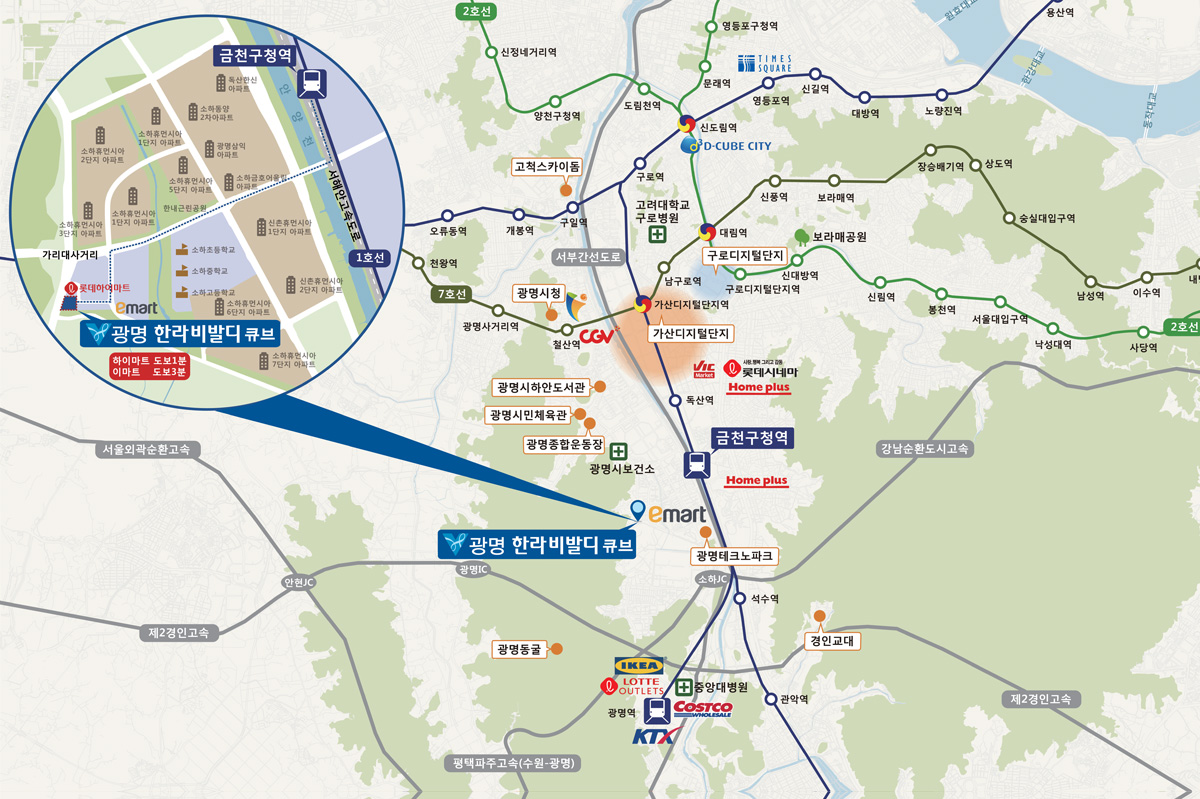 구로, 가산디지털 단지 종사자의 접근이 용이한 위치